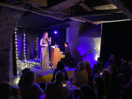 Cette magnifique cave voûtée dont certaines poutres datent du XVème sciècle dispose d'une petite scène. Nous y accueillons des musiciens que nous aimons pour des concerts intimistes de qualité